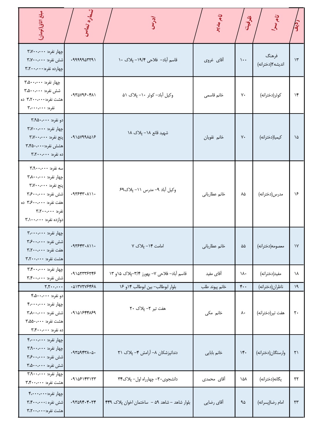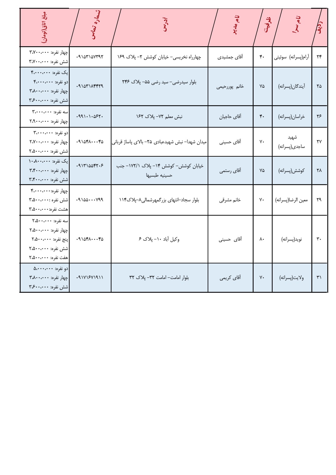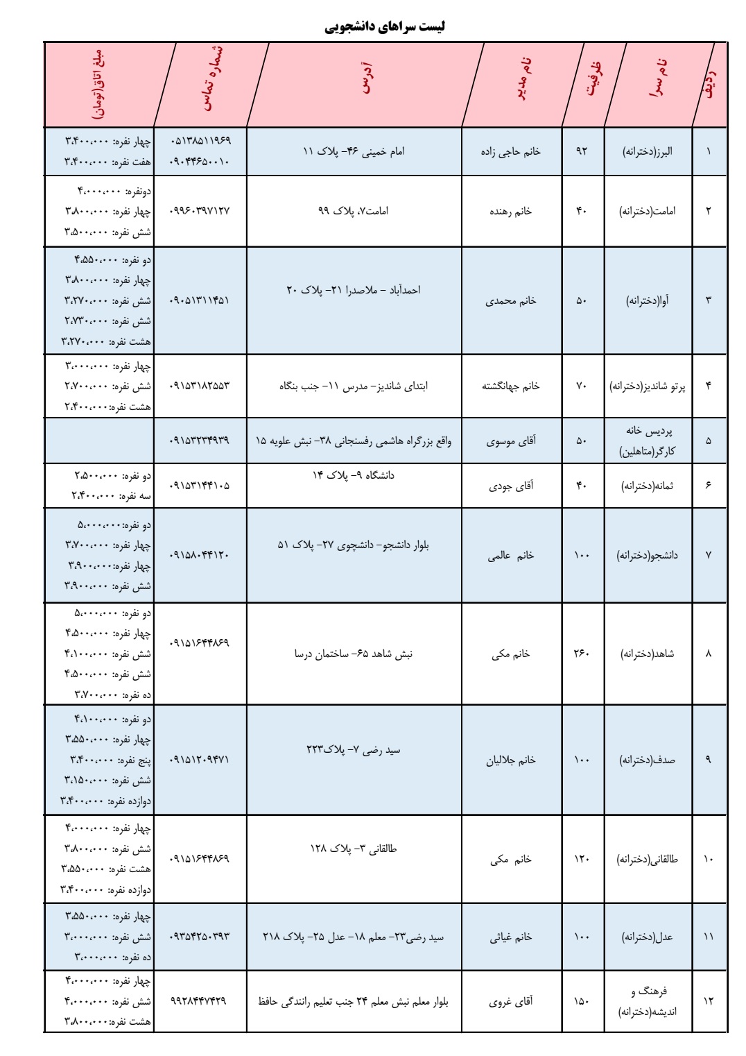 ليست خوابگاههاي مورد تاييد وزارت علوم، تحقيقات و فناوري در مشهد مقدس به شرح زير ميباشد: