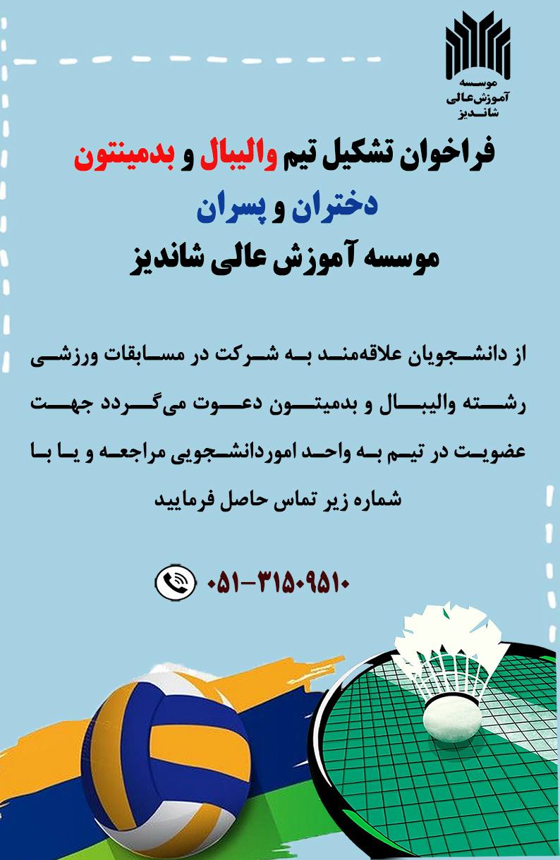 فراخوان تشكيل تيم واليبال و بدمينتون دختران و پسران
